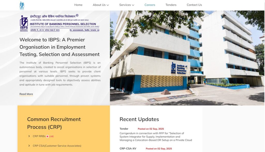 - आधिकारिक वेबसाइट पर जाएं: सबसे पहले IBPS की ऑफिशियल साइट ibps.in खोलें। होमपेज पर पहुंचने के बाद CRP-RRBs सेक्शन ढूंढें।