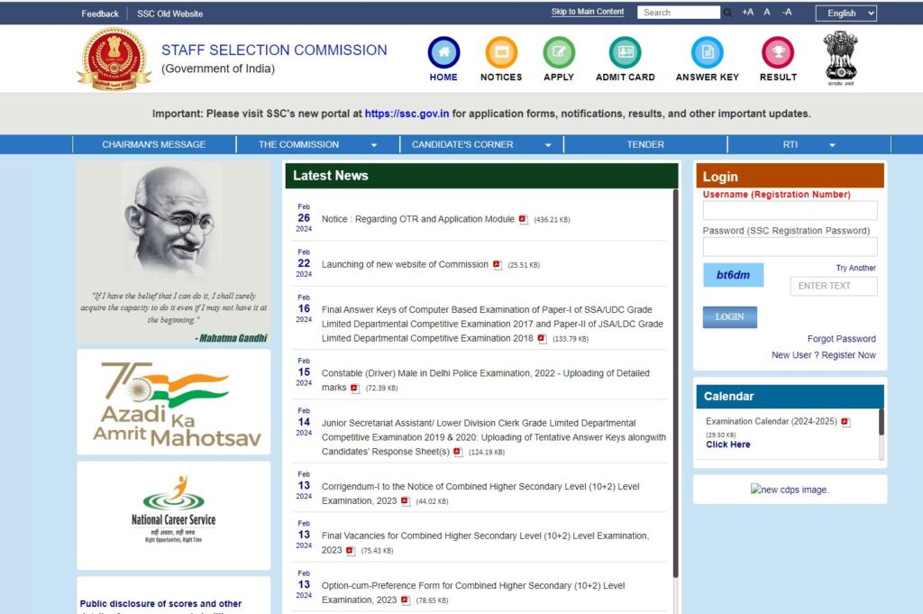 - SSC की आधिकारिक वेबसाइट पर विजिट करें: सबसे पहले ssc.nic.in के होम पेज पर जाएं। यह SSC का मुख्य पोर्टल है, जहां सभी महत्वपूर्ण अपडेट्स मिलते हैं।