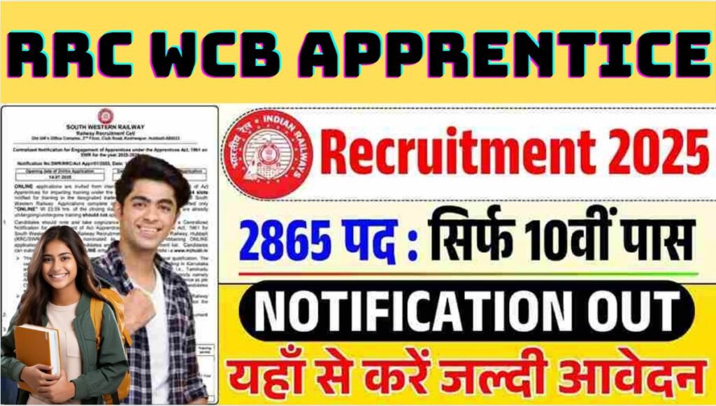 RRC WCR Apprentice Recruitment 2025 नमस्कार छात्रों! अगर आप रेलवे में सरकारी नौकरी की तलाश कर रहे हैं, तो रेलवे रिक्रूटमेंट सेल (RRC) वेस्ट सेंट्रल रेलवे (WCR) की तरफ से आई अप्रेंटिस भर्ती 2025 आपके लिए बेहतरीन मौका है। RRC WCR ने अप्रेंटिस एक्ट 1961 के तहत 2865 पदों पर आधिकारिक नोटिफिकेशन जारी कर दिया है। ये भर्ती 10वीं पास और आईटीआई वाले युवाओं के लिए है, जहां कोई एग्जाम नहीं होगा सिलेक्शन मेरिट बेस्ड होगा। अगर आप बिहार, MP या अन्य राज्यों से हैं, तो ये आपके करियर को रेलवे में सेट करने का शानदार चांस है। इस आर्टिकल में हम RRC WCR Apprentice Recruitment 2025 की पूरी डिटेल्स बताएंगे योग्यता, आवेदन प्रक्रिया, महत्वपूर्ण तिथियां और बहुत कुछ। आखिर में महत्वपूर्ण लिंक्स भी देंगे, ताकि आप आसानी से अप्लाई कर सकें। चलिए, शुरू करते हैं!