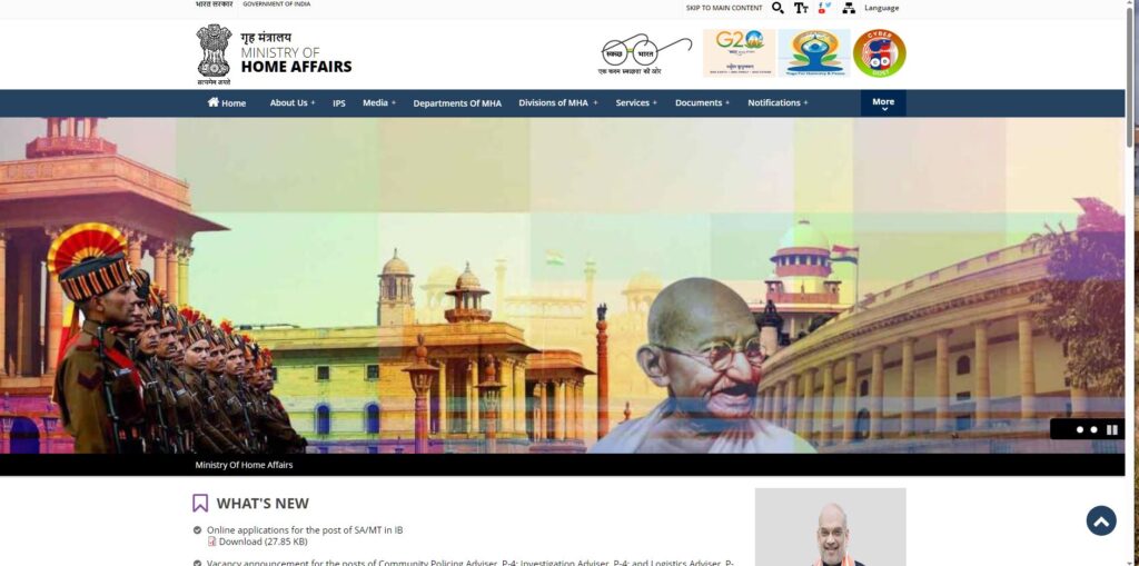 - सबसे पहले, आधिकारिक वेबसाइट mha.gov.in पर जाएं और होम पेज खोलें।