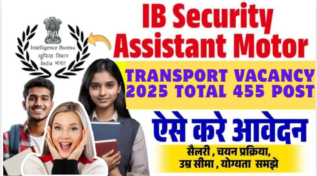 IB Security Assistant Motor Transport Vacancy 2025: क्या आप इंटेलिजेंस ब्यूरो (IB) में एक स्थायी सरकारी नौकरी की तलाश में हैं? तो आपलोगों के लिए अच्छी खबर है IB ने सिक्योरिटी असिस्टेंट (मोटर ट्रांसपोर्ट) के 455 पदों पर भर्ती के लिए आधिकारिक नोटिफिकेशन जारी कर दिया है। आवेदन प्रक्रिया 6 सितंबर 2025 से शुरू हो चुकी है और 28 सितंबर 2025 तक चलेगी, जहां योग्य उम्मीदवार ऑनलाइन फॉर्म भर सकते हैं।