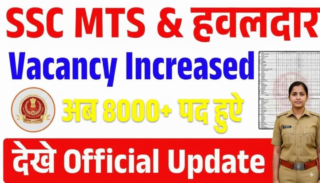 | SSC MTS Vacancy Increased के बाद नई वैकेंसी संख्या | 8,021 पद (6,810 MTS + 1,211 हवलदार) – युवाओं के लिए ज्यादा मौके |