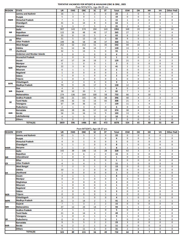 | MTS (NT) | 18-27 वर्ष | विभिन्न क्षेत्र और राज्य | 732 – अतिरिक्त पदों का लाभ |