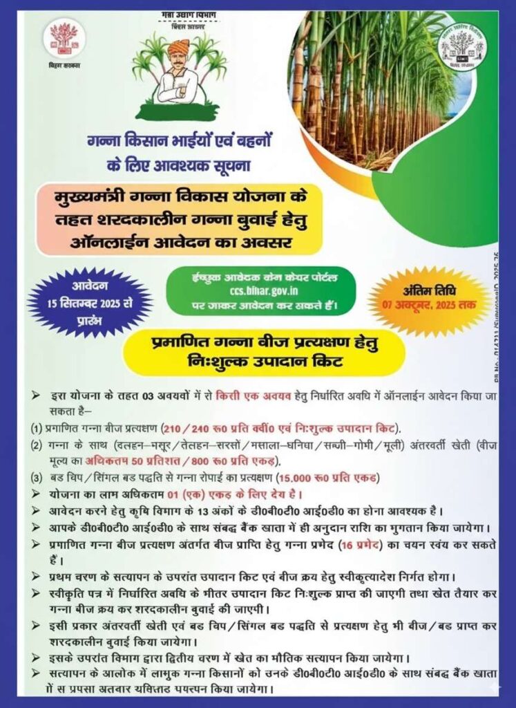 | योजना का नाम | बिहार मुख्यमंत्री गन्ना विकास योजना 2025 |
