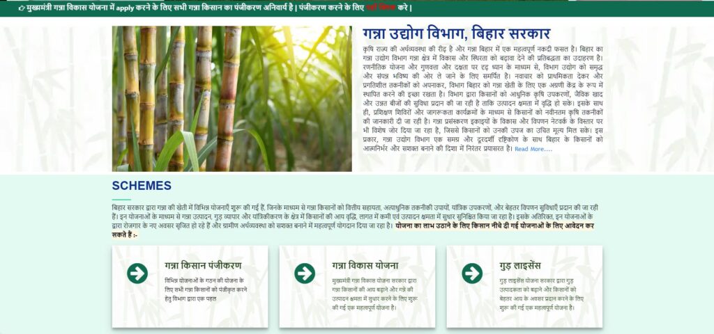 - सबसे पहले आपको गन्ना उद्योग विभाग, बिहार की आधिकारिक वेबसाइट पर जाना होगा।