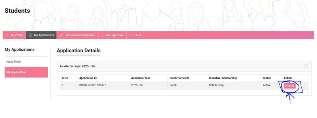 - सफलतापूर्वक लॉगिन होने के बाद “Proceed” और फिर “Fill Application” के विकल्प पर क्लिक करें