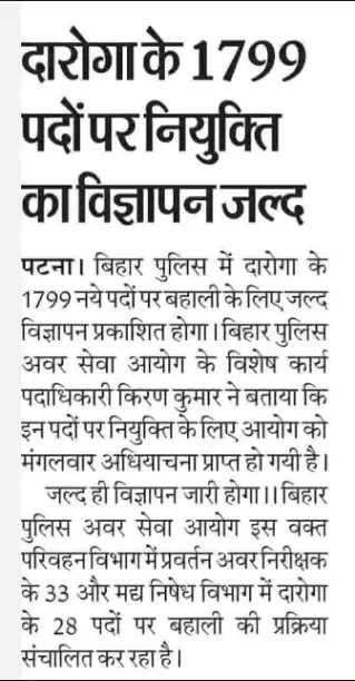 बिहार दरोगा के कुल 1799 पदों के लिए शॉर्ट नोटिस जारी किया गया है।