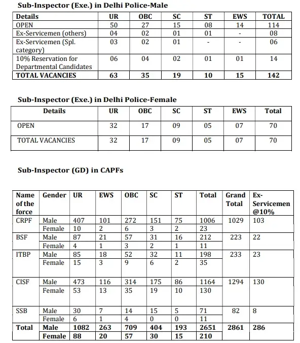 SSC CPO Vacancy 2025: के कुल पदों का लिस्ट