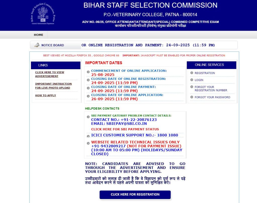 - वहाँ “BSSC Inter Level Recruitment 2025 (Re-Open)” का लिंक मिलेगा, जिस पर क्लिक करें। यह लिंक 15 अक्टूबर 2025 से-ऐक्टिव होगा।