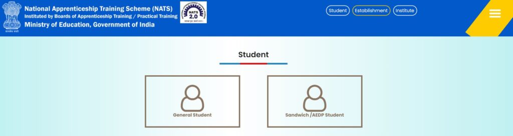 - होमपेज पर “Student” विकल्प पर क्लिक करें।