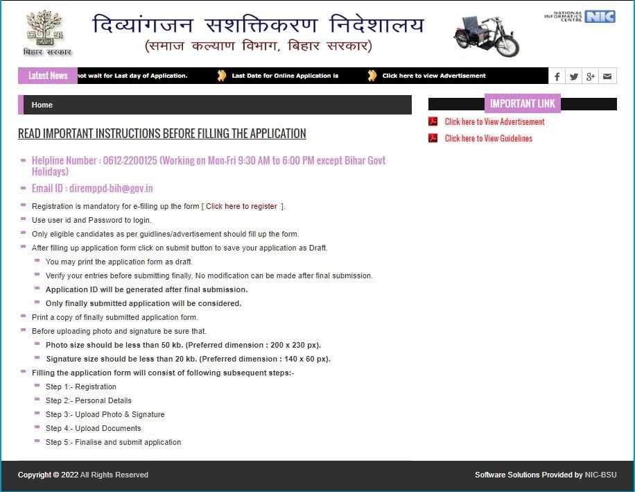 उत्तर: बिहार के ऐसे दिव्यांग व्यक्ति जिनकी दिव्यांगता 60% या उससे अधिक है, वे इस योजना के लिए पात्र हैं।