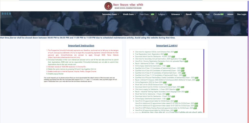 - सबसे पहले बिहार बोर्ड की ऑफिशियल वेबसाइट पर जाएं।