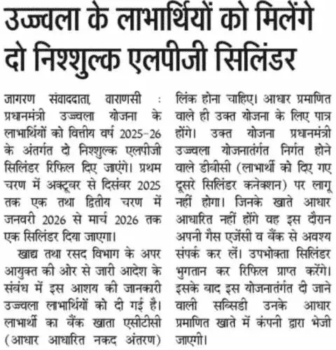- दूसरा सिलेंडर जनवरी से मार्च 2026 के बीच वितरित किया जाएगा।