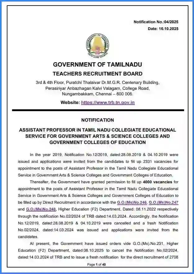 | लेख का नाम | TN TRB Assistant Professor Vacancy 2025 |