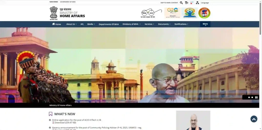 - सबसे पहले ऑफिसियल वेबसाइट mha.gov.in पर जाएं या “Apply Online” लिंक पर क्लिक करें।