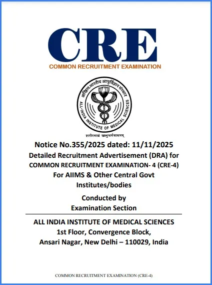 AIIMS 4th CRE Group B & C Vacancy 2025: India Institute of Medical Sciences (AIIMS) ने हाल ही में 4th CRE Group B & C भर्ती 2025 के लिए नोटिस जारी किया है, जिसमें 1300+ पदों पर वैकेंसी निकाली गई है। अगर आप भी AIIMS में नौकरी पाने का सपना देख रहे हैं, तो यह आपके लिए सुनहरा मौका है। इस भर्ती में ग्रुप बी और सी के अलग-अलग पदों के लिए आवेदन आमंत्रित किए गए हैं। इच्छुक उम्मीदवार 14 नवंबर 2025 से 2 दिसंबर 2025 तक ऑनलाइन आवेदन कर सकते हैं।