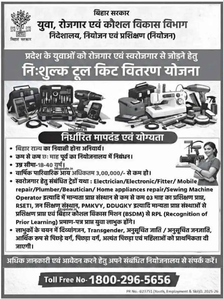 Bihar Free Tool Kit Yojana 2026: किन उम्मीदवारों को मिलेगा सबसे पहले फ्री टूल किट का मौका?