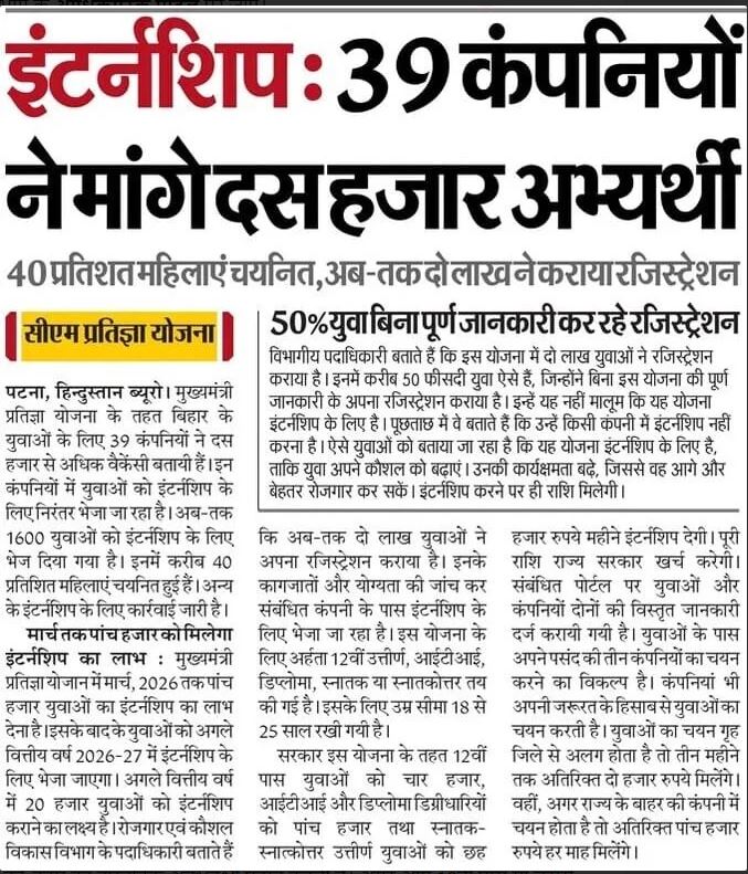 - लंबी अवधि में बड़े स्केल पर लाभ: सरकार का लक्ष्य अगले कुछ वर्षों में 1 लाख से अधिक युवाओं को इंटर्नशिप का लाभ देना है, जिससे बिहार के युवा रोजगार, स्किल डेवलपमेंट और करियर ग्रोथ के लिए एक मजबूत इकोसिस्टम तैयार हो सके।