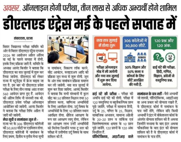 | परीक्षा का नाम | बिहार डी.एल.एड संयुक्त प्रवेश परीक्षा 2026 |